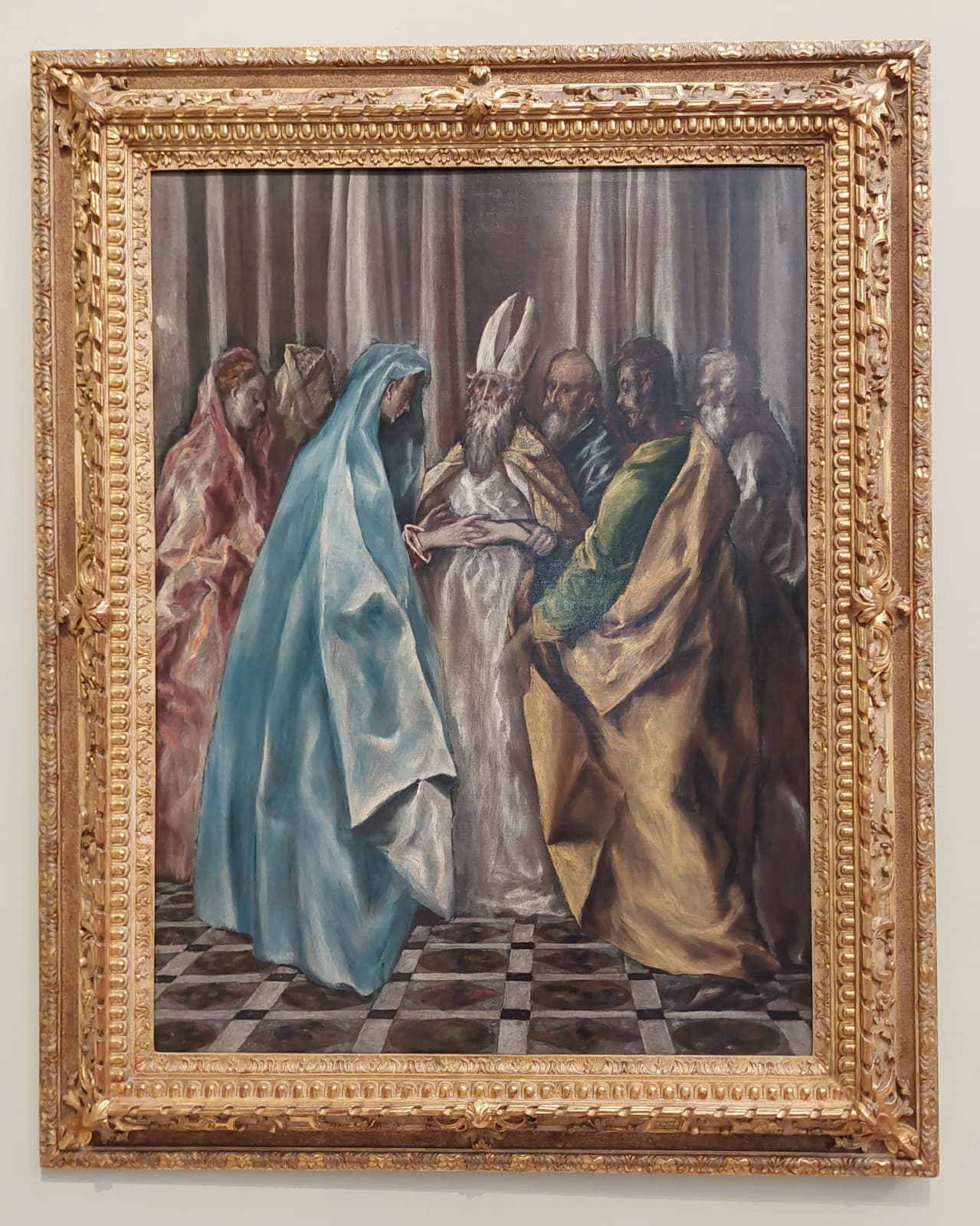 Erwin Kessler, directorul MNAR, dezvăluie: “Muzeul Național de Artă al României are capodopere vizibile, cunoscute – Rembrandt, un El Greco foarte mare, Rubens. Una dintre aceste capodopere este “Logodna Fecioarei”, o lucrare cu totul și cu totul excepțională din mai multe puncte de vedere. Din punct de vedere plastic, în ea deja simți modernismul, simți de ce la începutul secolului XX, El Greco a fost recuperat din uitare de către moderniștii cei mai avansați ai timpului, de către expresioniști. Ei au simțit în el libertatea formei și a culorii, dincolo de reprezentare, dincolo de figură, aceea putere a culorii de a subjuga privirea. Mai important este aici partea de teologie explicită, o teologie în mod clar tridentină, contrareformistă, foarte asumată, în care se vede foarte clar că preotul care oficiază logodna Fecioarei este practic o întruchipare a legii vechi. De-o parte și de cealaltă a lui se află Sfântul Iosif și Fecioara. Iosif cu privirea în jos și trăgându-și mâna dreaptă, pe care de fapt preotul i-o împinge efectiv în mâna Fecioarei. Iosif, legea veche, practic cuprinde în ea și este cuprinsă în același timp de legea nouă, de către Fecioară, cu cele trei degete ale sale care sunt Treimea. Este o declarație extrem de puternică, tipic contrareformistă, pe care o mărturisește, pentru că este prezent acolo, însuși artistul. În stânga marelui preot se află un bătrân care de fapt ne privește pe noi. El este cel care ne cere empatia și ne cheamă în tablou, el este El Greco. Această lucrare arată că la sfârșitul vieții sale El Greco trăia teologia, nu doar o reprezenta.”