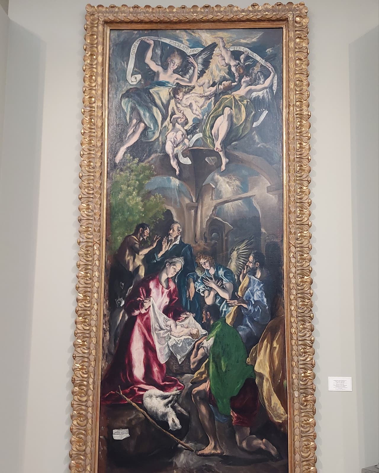 Cosmin Ungureanu, curator Galeria de Artă Europeană a MNAR, oferă câteva indicii pentru a înțelege picturile lui El Greco. “Din opera lui El Greco, un tablou foarte important se află la Muzeul Național de Artă al României, care odinioară făcea parte dintr-un ansamblu, este vorba de “Adorația păstorilor”. Acest tablou este important prin modul în care îl redă vizual El Greco, în contextul spiritualității epocii în care păstorii erau considerați modelul ideal de prelat. De altfel în această imagine sunt disimulate o sumă de elemente vizuale conotate simbolic, de la mielul legat – aluzie la sacrificiul cristic, toiagul pastoral – aluzie la cârja episcopală. Două alte elemente îmi atrag în mod particular atenția – o imersiune în prezent prin intermediul personajelor care dialoghează în fundal. Și al doilea element semnificativ este semnătura lui El Greco poziționată pe o cartolină tipic venețiană, semnătură foarte sugestivă, scrisă la bătrânețe în limba greacă – numele său Doménikos Theotokópoulos, cretanul și de asemenea mențiunea a creat, a conceput, nu a pictat.