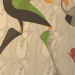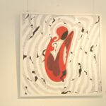 Lucrarile artistei sunt un vartej de linii negre in care se impletesc pete de culoare puternice. Siluetele rosii, albastre sau verzi alearga sau se ghemuiesc printre firele serpuitoare.